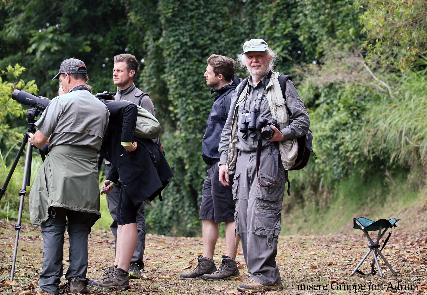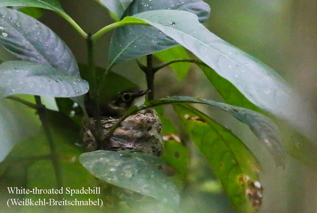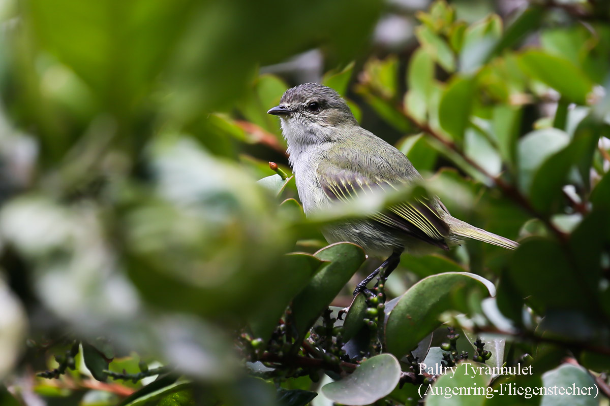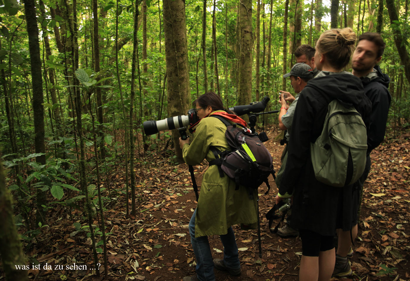 Wir gingen weiter bergauf. Immer wieder fand Adrián etwas Neues, das er uns zeigte. Manche Vögel waren so gut versteckt, dass wir selbst mit seinen Hinweisen Mühe hatten sie im dichten Laub zu sehen. |