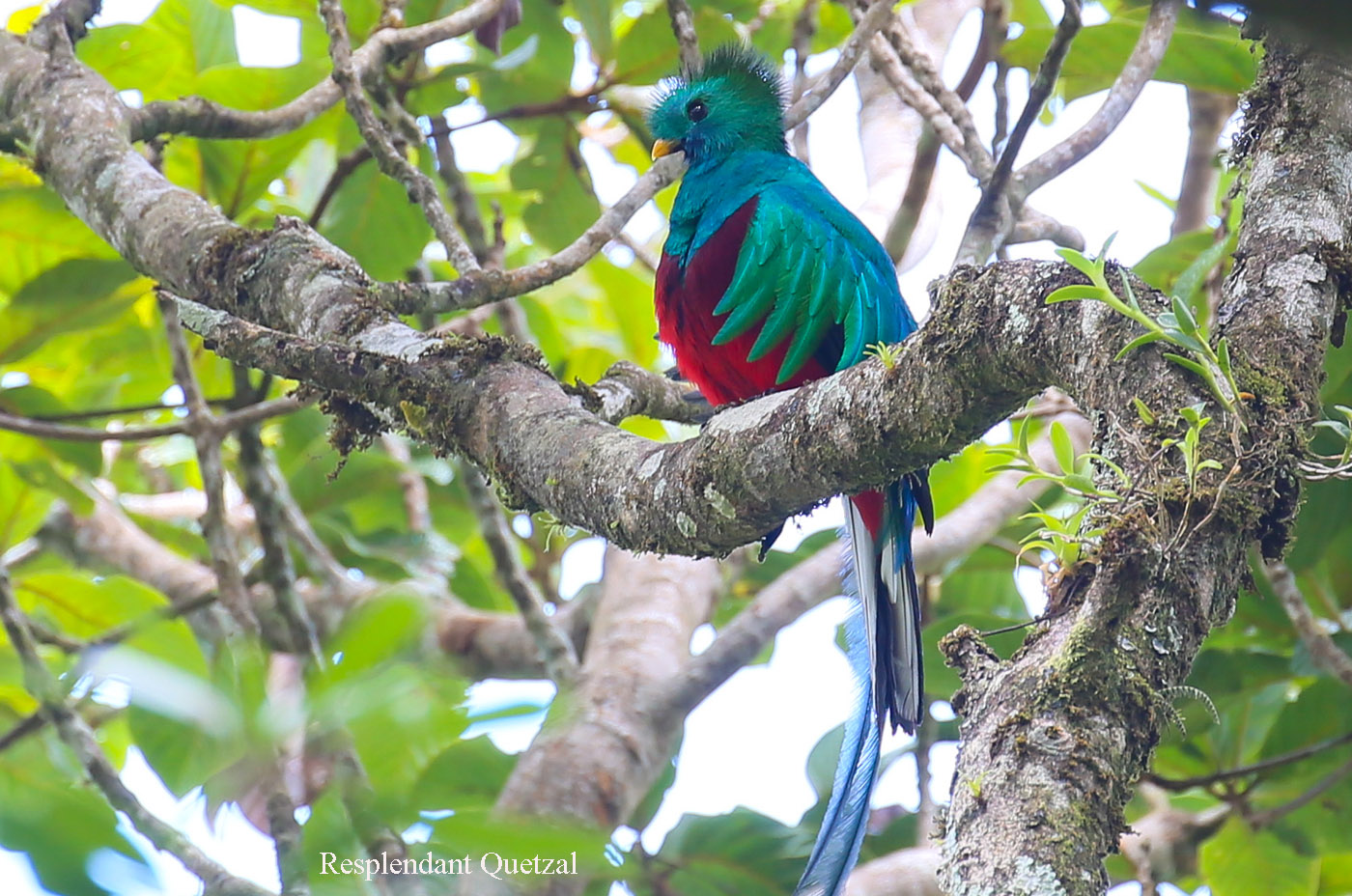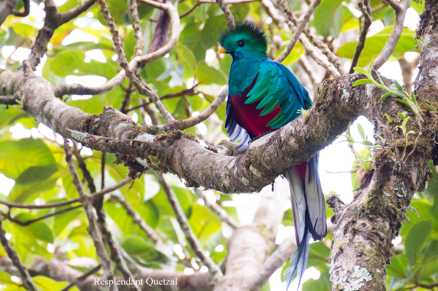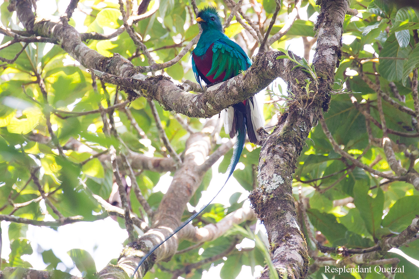 Ich war froh, als wir endlich den besagten Baum erreicht hatten. Gleich ließ ich mich auf mein Stühlchen nieder und ließ die anderen erst mal schauen. Nach ein paar Minuten hielt es mich aber nicht mehr auf meinem Stühlchen und ich konnte auch das Quetzal-Männchen mit seinem wunderschönen Gefieder und den langen Schwanzfedern bewundern. |