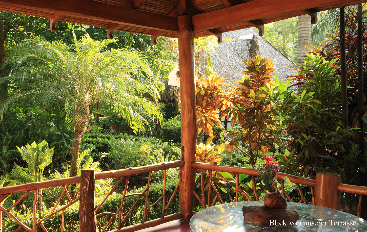 Gegen 14:30 h erreichten wir wieder die La Palapa EcoLodge. Ich machte ein paar Fotos von einigen Motiven in der näheren Umgebung unseres Bungalows. Dann fing ich schon mal mit meinem Tagesbericht an, als ein erster Donner ein Gewitter ankündigte. |