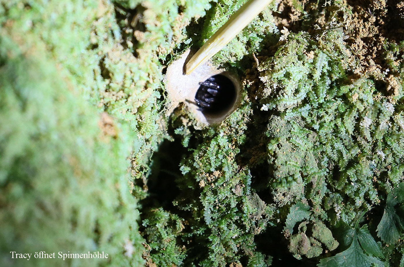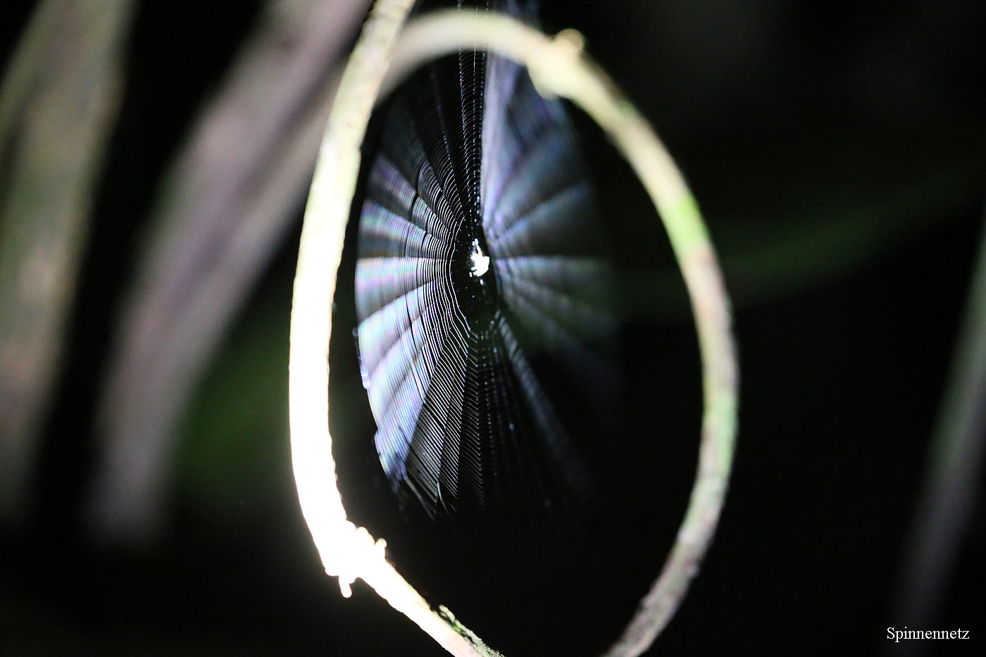 Irgendwo im Dunkeln mussten wir ein Boot besteigen und ein kleines Stück die Küste entlang fahren. An einem Bootssteg stiegen wir aus und wurden von Tracie begrüßt. Zunächst erhielt jeder eine Stirnleuchte, die man auf Rotlicht umschalten konnte, wenn es erforderlich wurde. Tracie erzählte uns viel Interessantes, besonders über Spinnen, was wohl ihr Spezialgebiet ist. Sie und Gian suchten mit ihren Taschenlampen immer abwechselnd nach Tieren, die sie uns zeigten. |
