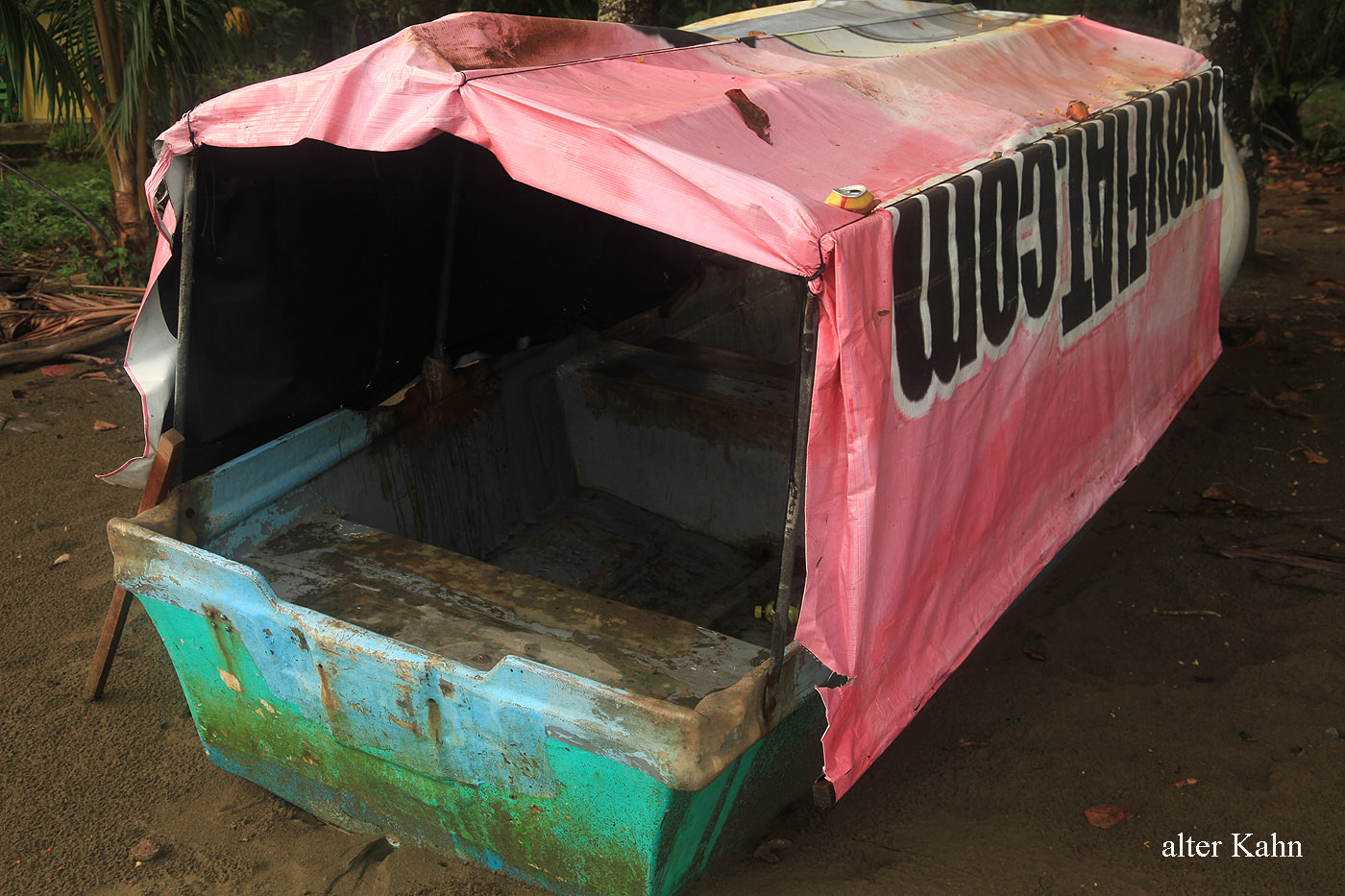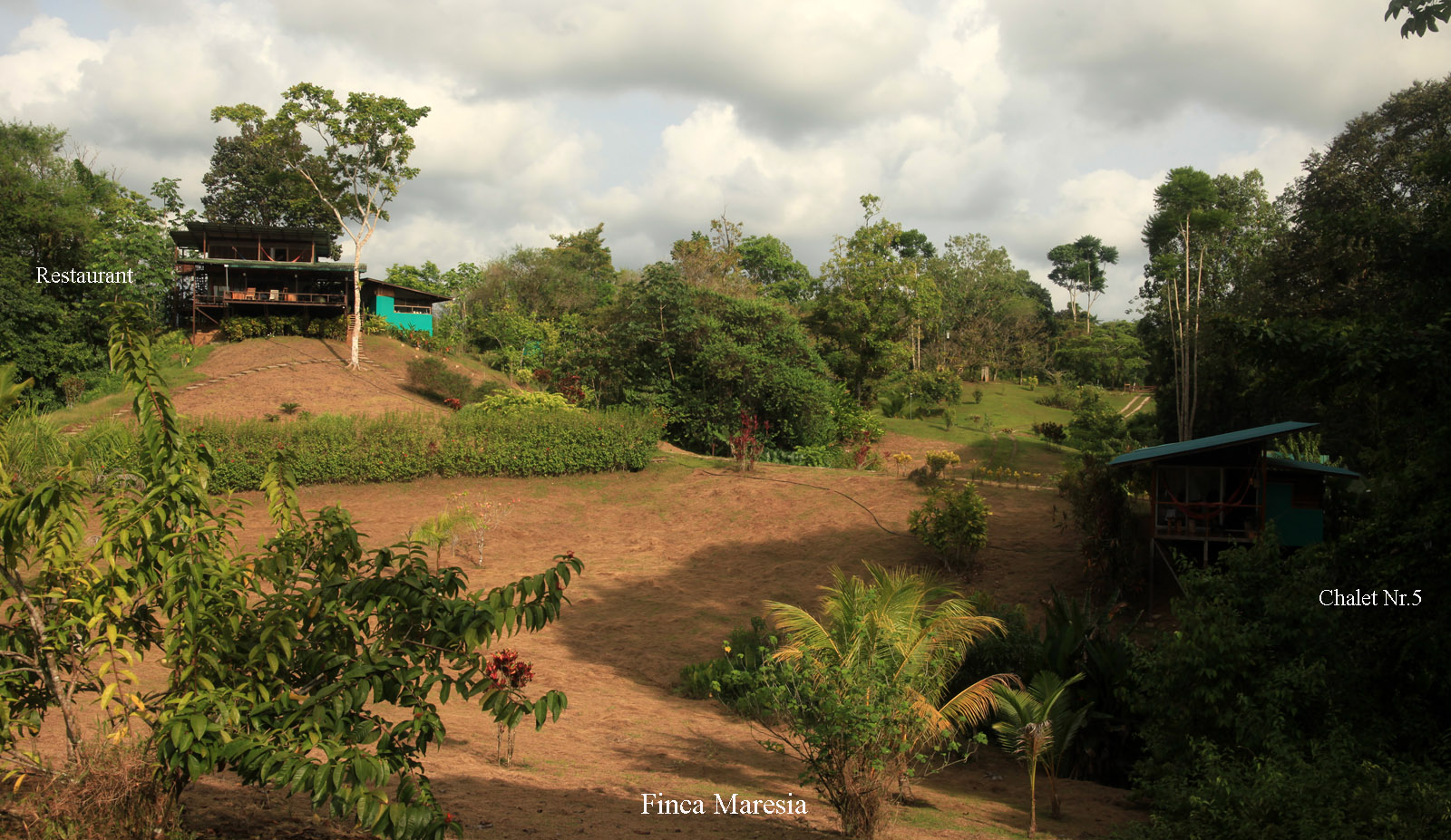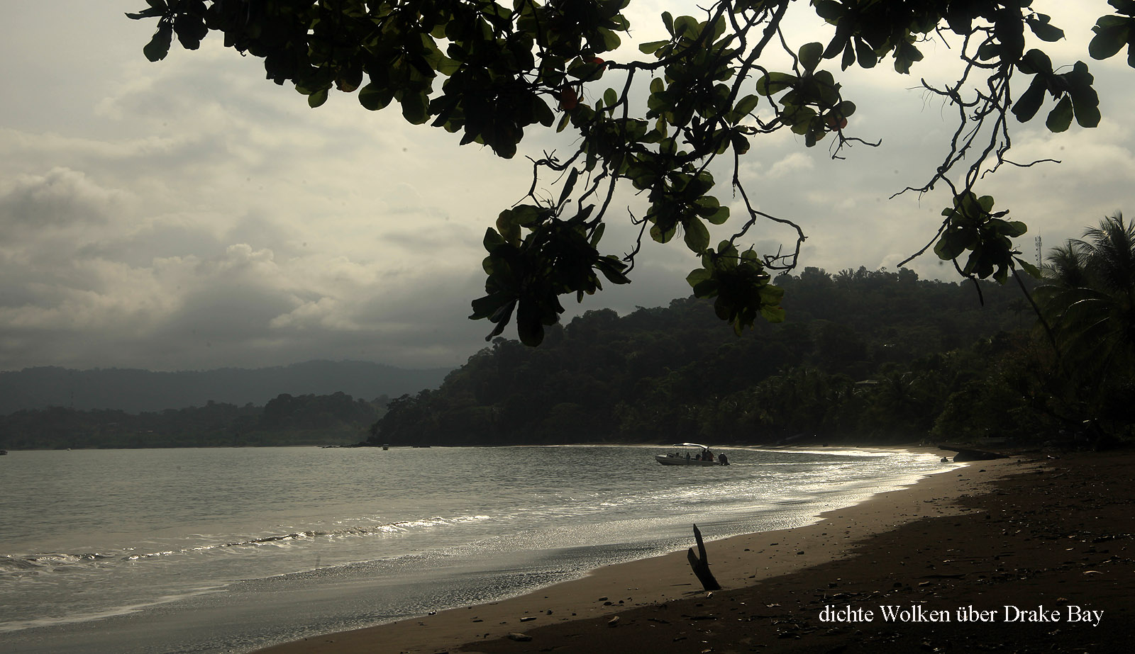 Um 2:00 h nachts wachte ich plötzlich mit einem Schock auf. Ein unglaublich lautes Geräusch hatte mich aus dem Schlaf gerissen. Es dauerte ein paar Sekunden bis ich realisierte, dass gerade ein gewaltiger Regenschauer auf unser Wellblechdach prasselte. Das hielt noch eine ganze Weile an. Irgendwann schliefen wir aber wieder ein und wurden gegen 6:00 h wieder wach. Es waren angenehme 25° bei einer Luftfeuchtigkeit von über 90 %. Wir machten diesmal einen kleinen Spaziergang vor dem Frühstück zunächst in der Nähe der Finca. Kaum hatten wir unseren Bungalow verlassen, als schon die ersten Tukane und Amazonen über uns hinwegflogen. Der Regen der vergangenen Nacht hatte der Natur und auch dem Wasserhaushalt der Finca gut getan. Als es mit Vogelstimmen etwas ruhiger wurde, stiegen wir ins Auto und fuhren mal runter zum Strand, wo wir gegen 7:10 h ankamen. Der Himmel war heute morgen ziemlich bedeckt, so dass zunächst das Licht zum Fotografieren nicht so geeignet war. Es wurde aber zusehends besser. |