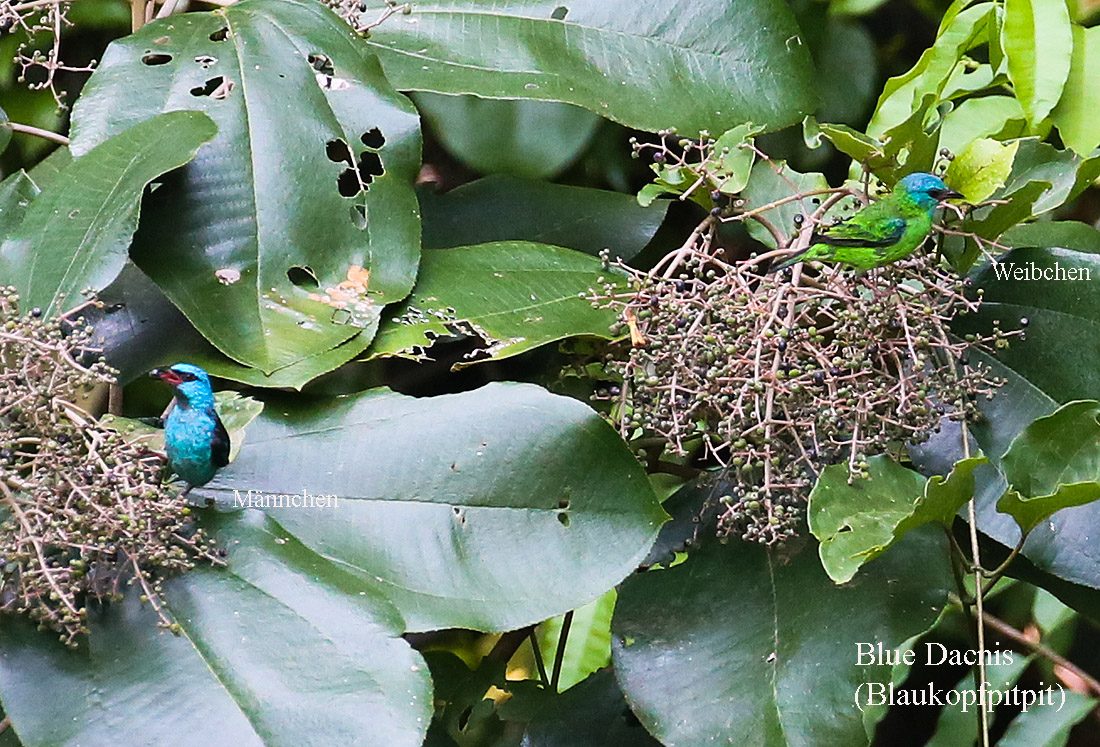 Wir sahen viele kleine bunte Vögel, die wir bisher vermisst hatten. Die Entfernung war leider etwas weit für detailreichere Fotos. |